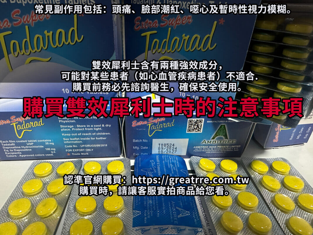 記住,健康始終是第一位。購買和使用雙效犀利士前,請務必尋求專業建議,讓您的用藥體驗更安心、更有效!
