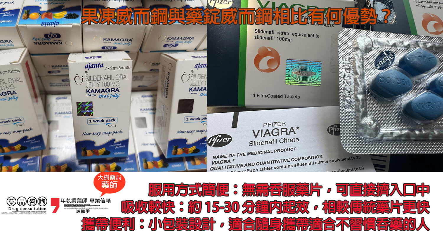 - ✔ 台灣藥局與醫院無法購買果凍威而鋼,因為未正式引進