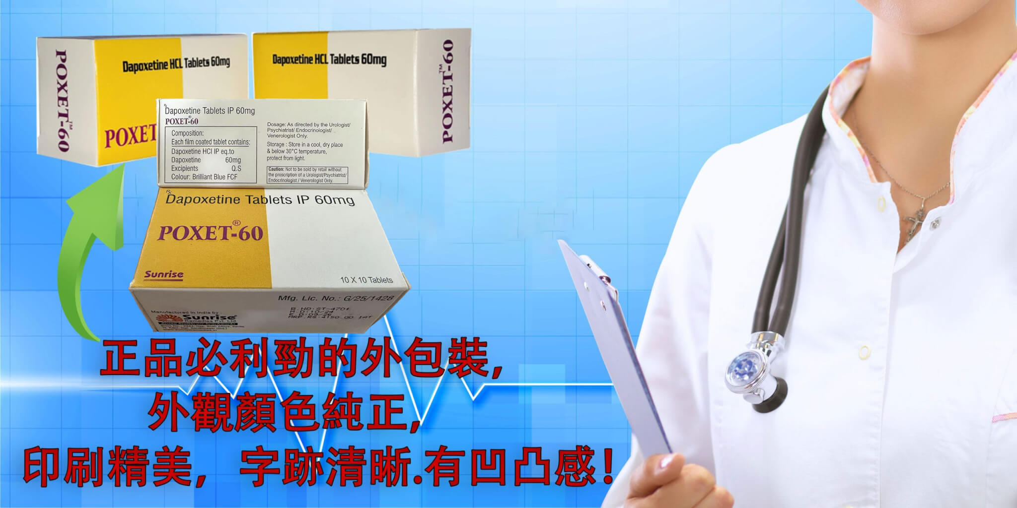 必利勁,是所有男性唯一指定的治療早洩藥物,學名被稱為達泊西汀,也叫“藍色小藥丸”。它屬於一種快速起效和代謝的選擇性5-羥色胺再吸收抑製劑,是一種用於治療16至84周歲男性早泄的藥物。然而,很多民眾在購買必利勁時經常會買到假藥或者僞藥,這讓他們非常苦惱。在不知情的情況下服用假藥會對身體造成嚴重的傷害。因此,台中五權店請到專業的醫師:遊佩雯藥師為民眾講解辨識必利勁真假的方法有哪些?希望大大們認真閱讀並記住以下內容!!