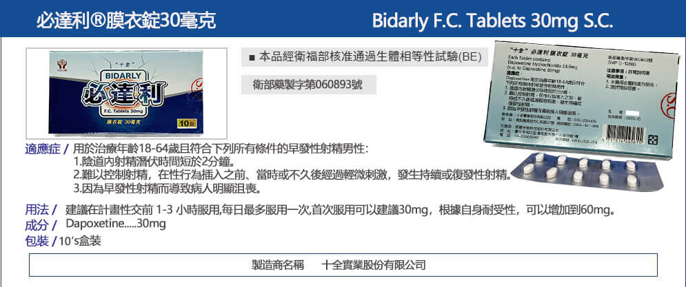 必達利 Bidarly 30mg 作為合法處方藥,應在醫師指導下使用。若有長期性生活不協調、早洩心理壓力,建議搭配性諮商或認知行為療法進行綜合治療,才能真正有效改善性生活品質。