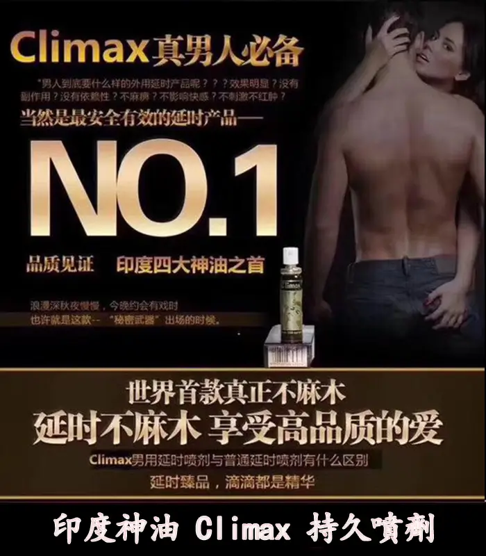 印度神油 Climax 是一款來自印度的傳統男性延時噴劑,專為改善早洩、延長性愛時間所設計。產品以天然草本精華為主成分,能在短時間內幫助男性降低陰莖敏感度,有效延長射精時間,提升性滿意度與自信心。