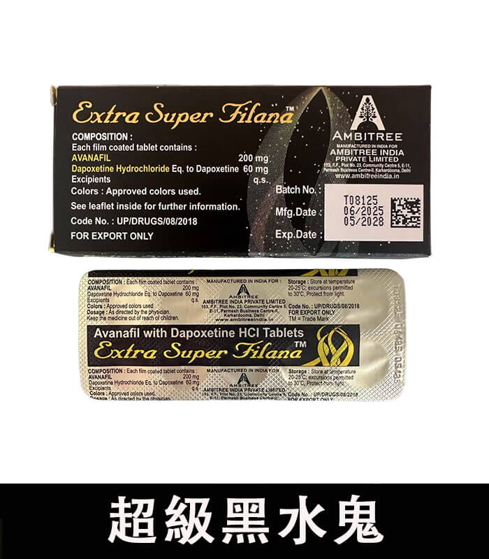 印度黑水鬼(Extra Super Filana) 結合兩大關鍵成分:阿伐那非(Avanafil)達泊西汀(Dapoxetine),同步解決「硬度不足」與「過快射精」兩大問題,是目前市面上極具代表性的雙效型男性壯陽藥。