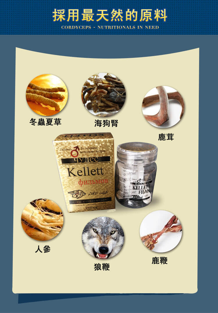 韓國奇力片KELLETT FILMS采用天然的植物原料,純植物萃取,調理男性性機能,從進二.次發育 ,無任何副作用和不適感;是一款可以長期用來保養男性性功能的一款產品;適合陽痿早洩、腰酸腿軟、失眠健忘、夜尿頻多者;工作壓力大、心理負擔重引起的性您低下、精力不佳、性生活時間短暫者、 藥物性陽痿、性功能低下者;老年性激素產生和分泌能力降低、性功能減退、體虛盜汗易疲勞者。