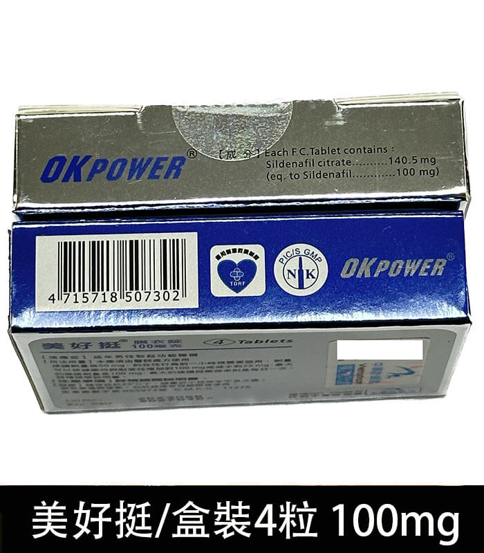 - 每盒含 4 錠 美好挺膜衣錠 OKPOWER,每錠含 100mg Sildenafil