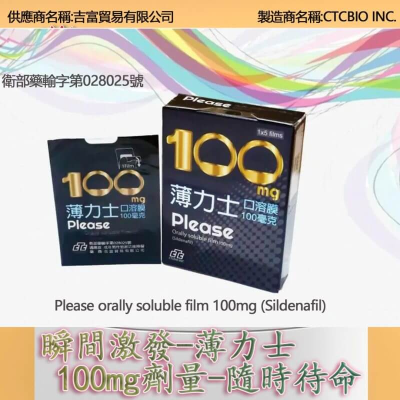 薄力士 Please 100mg 是一款專為男性勃起功能障礙(ED)設計的舌下口溶膜,其主要成分為 Sildenafil 100毫克,為全球知名壯陽藥「威而鋼」的學名藥版本。由合格製藥廠依照GMP標準生產,療效穩定,價格實惠,特別適合預算有限又追求效果的男性族群使用。